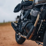Protect your engine with style using the Royal Enfield Compact Engine Guards, designed specifically for the Bear 650, Interceptor 650, and Continental GT 650. These guards add a layer of protection to critical engine areas while maintaining ground clearance and a sleek factory look.